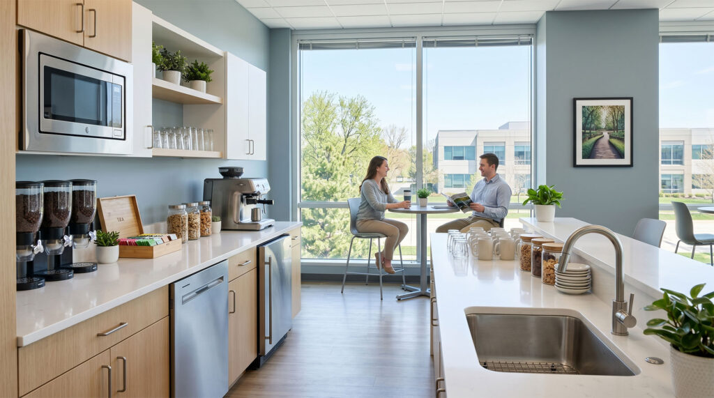 - Sanitize breakroom counters, sinks, and appliance handles.